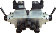 1、電磁換向閥 2、電磁換向閥手動(dòng)旋鈕 3、手動(dòng)轉(zhuǎn)閥1 4、集成塊 注:圖示 P-接至壓力氣源 A、B-接至工作腔 a1、a2、a3-接至壓力測(cè)量?jī)x表(或用堵頭堵。