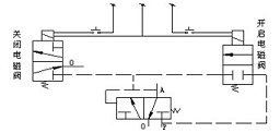 ① 開(kāi)啟:在二位三通電磁先導(dǎo)閥的手動(dòng)旋鈕處于與縱軸平行的“一”位置情況下,旋轉(zhuǎn)二位三通電磁先導(dǎo)閥的手動(dòng)旋鈕,實(shí)現(xiàn)開(kāi)啟手動(dòng)操作,動(dòng)作程序如自動(dòng)開(kāi)啟程序。