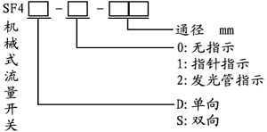 SF4型機械式流量開關用于測量流經(jīng)管道的液體流動狀態(tài), 如:水、油、乙稀、乙二醇等對銅無腐蝕作用的液體。是一種新型的檢測裝置,廣泛用于水電站供水系統(tǒng)斷水保護。采用日本歐姆龍微動開關,動作輕巧。 二、型號說明