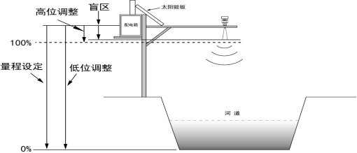 注:使用雷達物位計時,務必保證最高水位不能進入測量盲區(qū)。