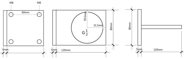 T字型安裝支架尺寸圖: