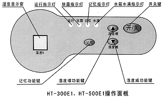 2) 濕度增減鍵:按增減鍵一下,設(shè)定濕度就增加或減少1%,按住增或減鍵1.5秒后,設(shè)定值以每秒5個點(diǎn)連續(xù)遞增或遞減。